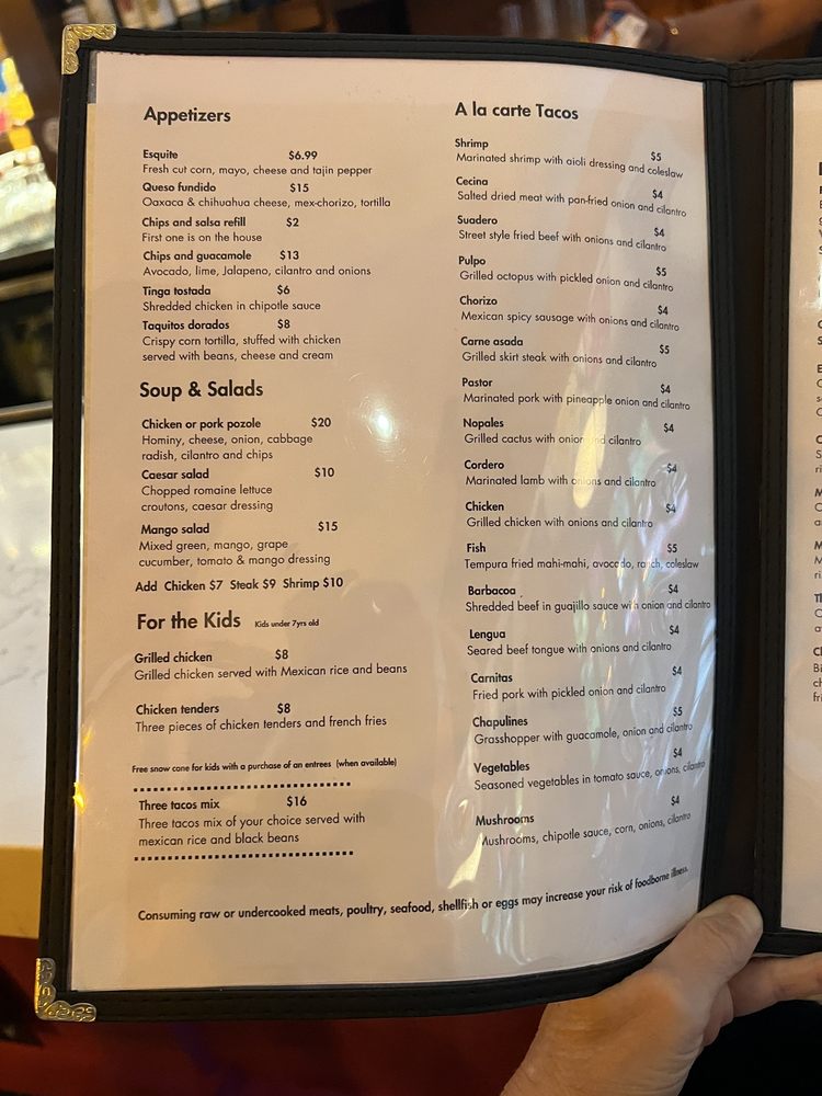 Melted cheese, steak, chicken, shrimp, chorizo, ribs, cactus, mexican rice, beans & tortillas